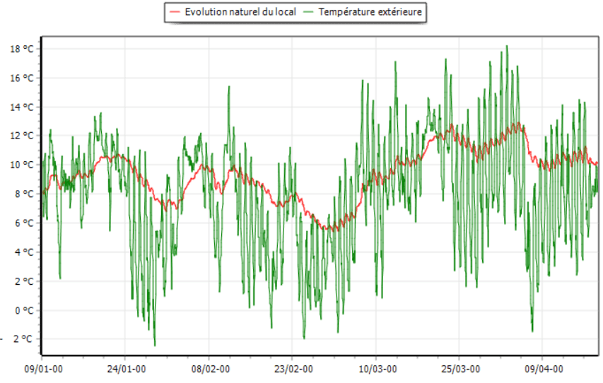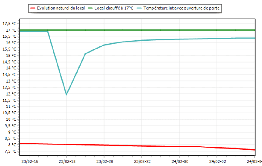Cela nous montre que l’ouverture d’une menuiserie sur un temps court n’est pas vraiment responsable des pertes globalisées sur du long terme. L’énergie reste stockée dans le local, dans ses parois (murs, plancher, plafond…). La température remonte vers l’état d’origine.